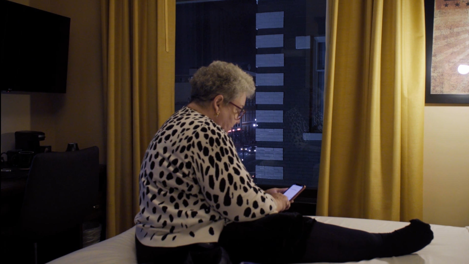 Sometimes a good formula is to have a simple premise and just execute it well, trying to avoid mistakes, never taking on more than what the film can handle. This film, a documentary portrait of an elderly woman’s role in a dom/sub relationship, is fairly straightforward. We see her unpack a suitcase, take out all her materials and toys, disinfect them, get dressed, etc. and then wait for the other party to get to the hotel room, all while she describes the arrangement and her feelings towards it. Everything is handled tastefully, without salaciousness, without scandal – and yet each closeup is charged with meaning, with history, with love. As she readies herself and waits on the bed, we understand that this is a love ritual.