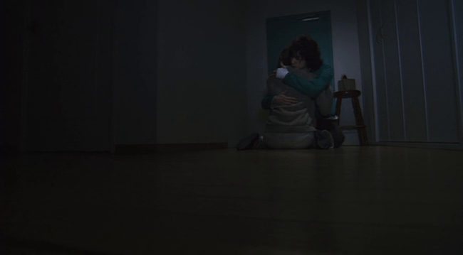 But, for the most part, their utopia is hidden away. Almost no one knows of the little world they’ve created. At the end of episode 9, Sumire and Momo sit on the couch and contemplate on how to spend the night (is it their last night?). They’re captured in a two-shot, simply talking. But two characters sitting on a couch can become an entire dramatic universe. When the first close-up of Sumire occurs, she is facing down, unable to deal with the reality of what will happen. Momo tries to keep a happy face, but even he can’t bear it. The acting here by Koyuki is nothing short of perfect – the way she finally looks at him, lifting her gaze, her eyes discovering him as if for the first time, searching his face, unsure, halting, mesmerized. Two characters looking at each other, the frame locked in tight on them, after a series of cuts which brought us closer, just for this moment; a series of formal decisions made to orchestrate this emotion… What emotion? The birth of something new, a new desire, a new gaze, a new world. When these characters share the frame, they create an