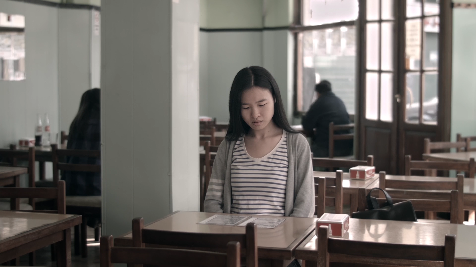 And like that they walk around the classroom, repeating phrases learned from their books about a world that never existed. All the time the events in Xiao Pin’s life are rendered ungraspable due to her lack of language resources. At the beginning of the film she sits at a bar with her salary in her pocket, very hungry, but since she doesn’t understand any of the options on the menu she leaves, embarrassed. She looks for “barbeque”, which is the only word she knows, and she doesn’t find it. She ends up eating a hot dog on the street which one supposes doesn’t have a lot of options to choose from. Language determines the scope of her possibilities. Those first rudimentary sentences that are spoken in the classes find their cinematic form in simple images: people walking, people talking, and not much else. In that sense, Nele Wohlatz doesn’t want to find a surplus of virtuosity where it isn’t there.