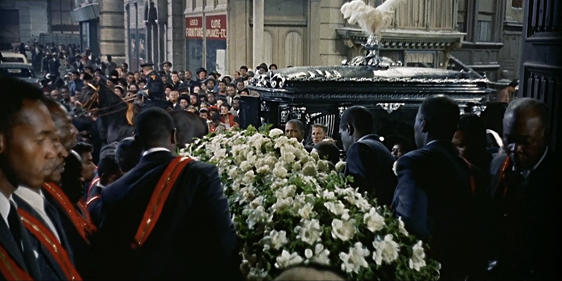 Let us not forget that the etymology of the word refers precisely to the “musical drama” (melodrama). Hence the often preponderant role of the melodic line in the internal organization of the work. The most radical audacity in this area is represented with the bliss we felt in The Umbrellas of Cherbourg (1964) and A Room in Town (1982) by Jacques Demy, both conceived as true film operas. Moreover, the birth of melodrama took place at the beginning of the 19th century, when the royal and princely characters of tragedy gradually faded away in favor of the bourgeoisie, which had now reached power and business. In this context, Verdi’s La Traviata appears, in 1853, as one of the first splendors of the genre. From then on, the operatic dimension never ceased to haunt melodrama, to inflect its style by revisiting misfortune to give it aesthetic and moral depth. All the great filmmakers will know how to seize this musical opportunity with, of course, varying fortunes, but always the awareness of a decisive issue in the way of conceiving the overcoming of everyday life through the exacerbation of feelings. Music and song approach the mystery of death with greater intuition, a more radical appreciation of the secret of shadows than any other expressive medium. One only has to imagine what Contempt (Jean-Luc Godard, 1963) would be without Delerue’s extraordinary score, Senso (Luchino Visconti, 1954) amputated from Bruckner’s Symphony No. 7, or Imitation of Life (Sirk, 1959) without the funeral song that comes out of Mahalia Jackson’s throat during the funeral ceremony of the black maid: