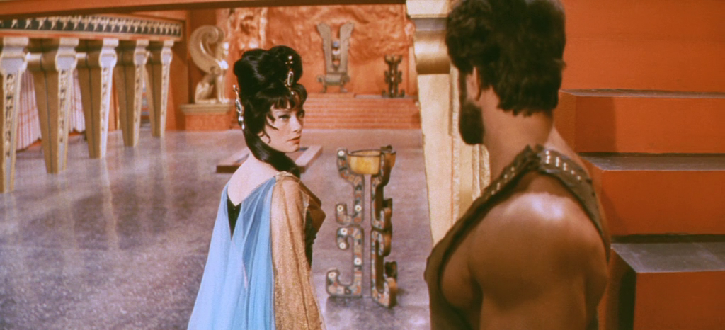 Cottafavi carried out a similar operation with peplum, which for a few years (1958-1963, basically) was the most popular cinema in Italy. The main function of these films, which triumphed mainly in peripheral theaters, was entertainment, for which they received the obligatory nickname of escapist, like cloak-and-dagger cinema before and then gothic, spaggheti western and giallo. But at the same time, they offered a few references to political themes of the past (the dictatorship, the resistance) and of the present (the influence of the United States, the atom bomb). Cottafavi did not miss this chance. In Hercules and the Conquest of Atlantis , which has some of his most beautiful images, the hero confronts a queen who wants to produce a superior race from the one drop of Uranus’ blood that fell to earth after his children defeated him. The creatures are all the same: white and extremely blond men, with beards and no moustache. The plot and iconography refer to fascism and Nazism. In fact, the queen’s palace coincides with Mussolini’s taste for ancient monumental classicism and, in addition to the Aryan delirium, in Atlantis there is a concentration camp that when Hercules and his companions open it effortlessly recalls the liberation of Auschwitz. But in addition to allusions to the past, it is also possible to to find in the film a fable about the present, and with it, a conception of heroism different from the one that appeared earlier in The Flame that Never Dies and from the one that will appear later in I centi cavalieri. Hercules acts on behalf of the people of Atlantis, against the oppressive state, and then returns home to Thebes, so that instead of functioning as a hero in the style of the carabinieri he functions rather as the foreigner who puts an end to illegitimate power. A sort of one-man allied force. Or else: a western demigod (the final atomic apocalypse strikes the dark note here). Politically, by the logic of the actions rather than the parleys, the film presents him as a left-of-center democrat fond of leisure in times of city-states. As soon as he arrives in Atlantis, he defeats Proteus. A minute before leaving, he defeats the blood of Uranus. That is to say, the alchemic-anarchic and the One-totalitarian, as if he were the envoy of moderation: a figure that ensures both variation and equilibrium.
