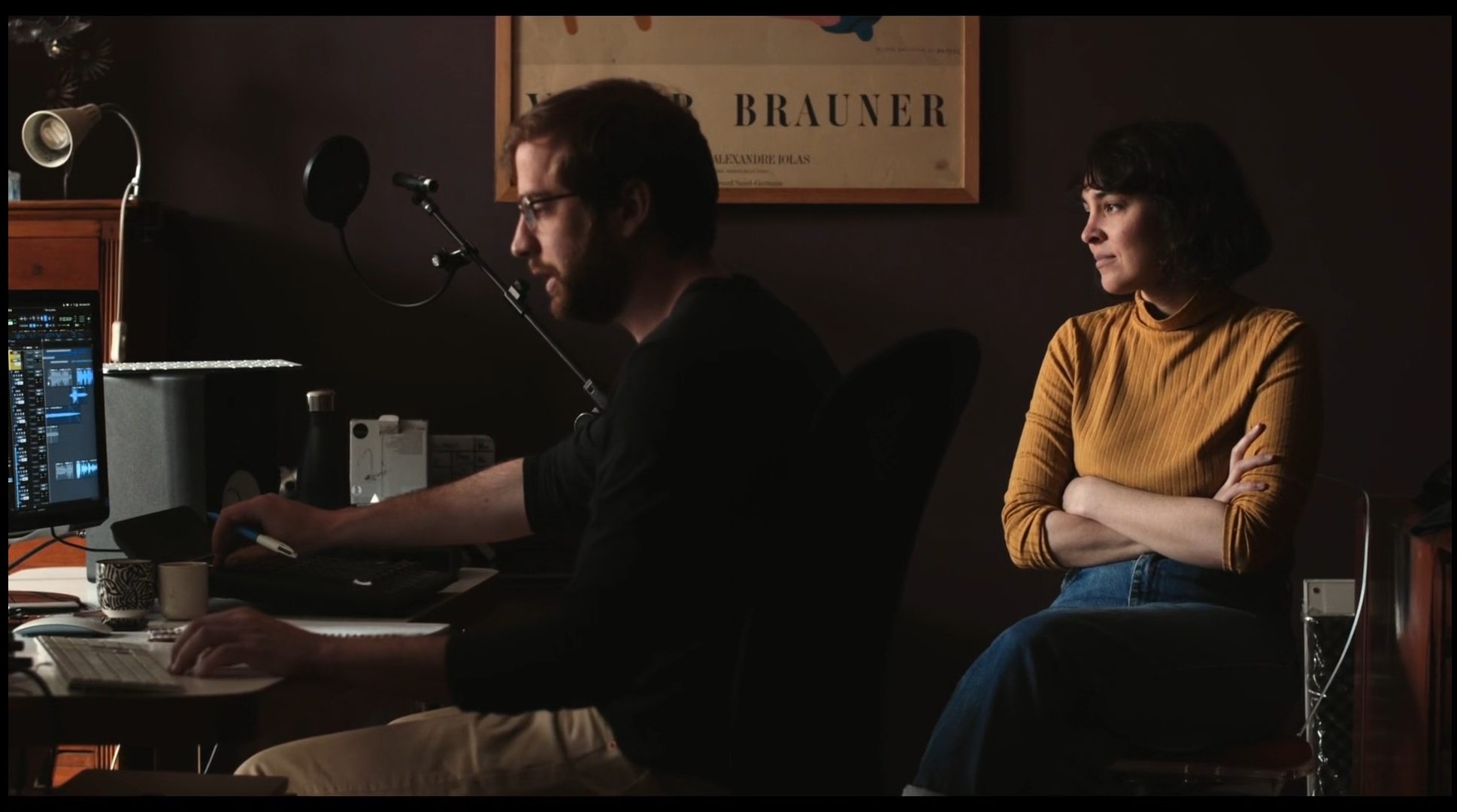 Perhaps we can term this period the Mouret years. After casting him in a supporting role in Sans Regret, Leroi partnered with him to write and direct a short called La Réputation. Leroi steps in front of the camera to play a film director who’s editing her film, a type of suspense film, and is working on the sound editing. She then hears that her sound editor has a notorious reputation as a lothario, seducing multiple women on the sets where he works. The question is then: why isn’t he trying to seduce me?