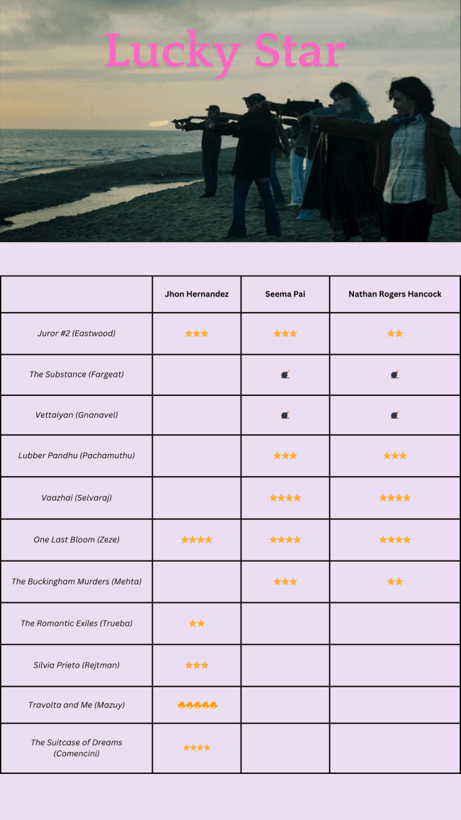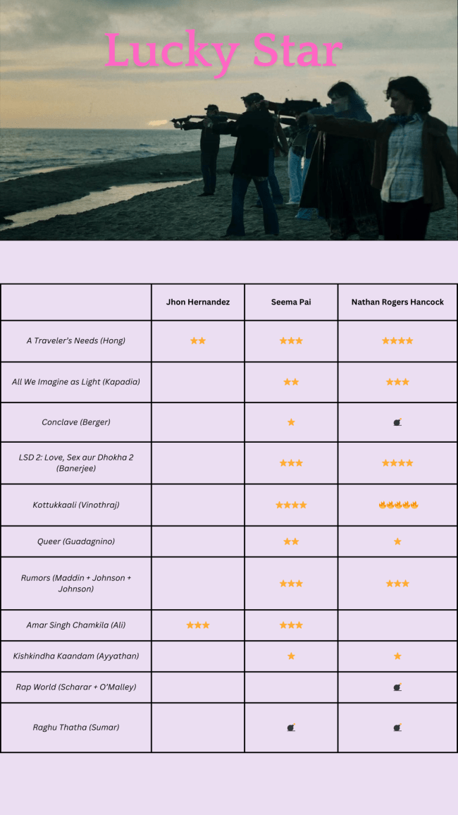 The story of Lucky Star starts around 2019. The initial discussions were inspired by the Argentine film journal, La vida útil, and our desire to have a space to explore our cinephilia. In that initial conception, we had planned to start out with dedicated issues. We wrote a lot toward this goal, but ultimately landed…… Continue reading Year in Review: Best of 2024